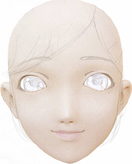 鉛筆で眉やアイラインを描き、色鉛筆でメイクも描く。二次元でイラストを描いているのと全く同じ要領。