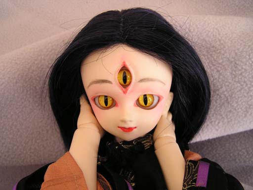 植毛で後ろ髪を伸ばし、巫女さんよろしくゆわえてあります。
